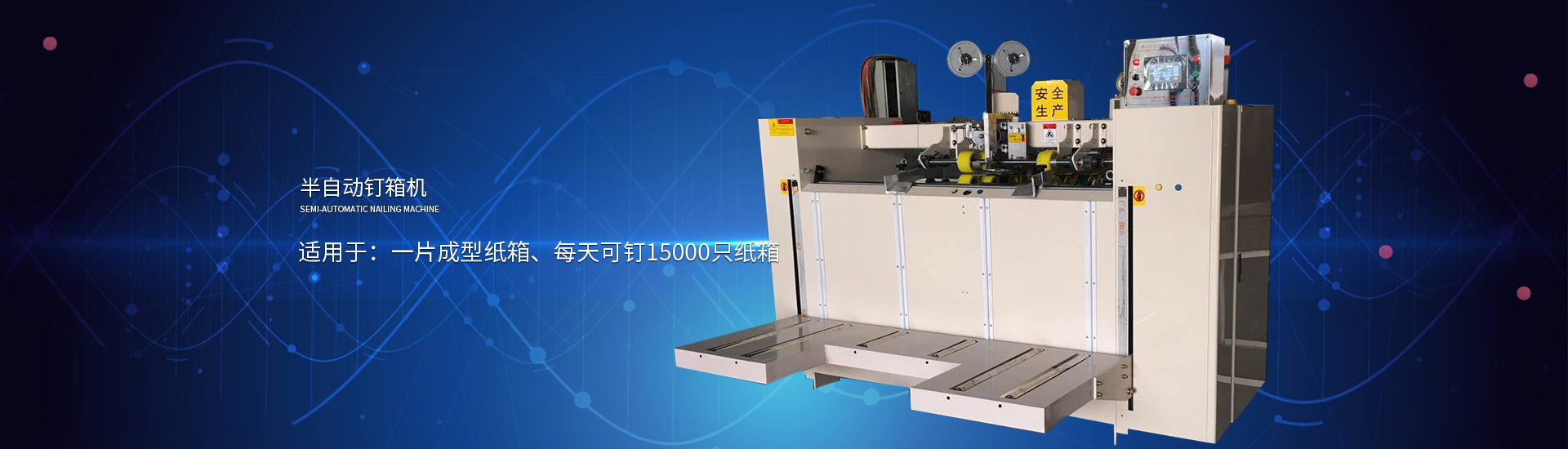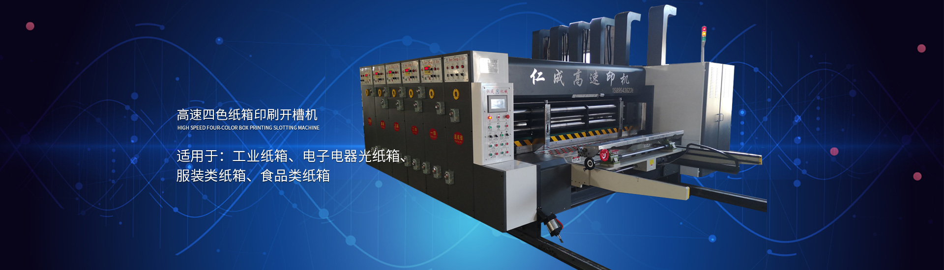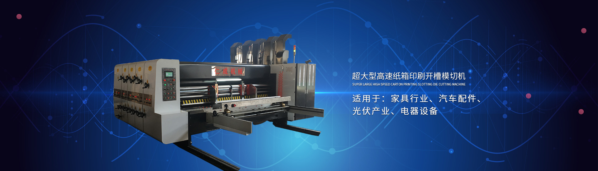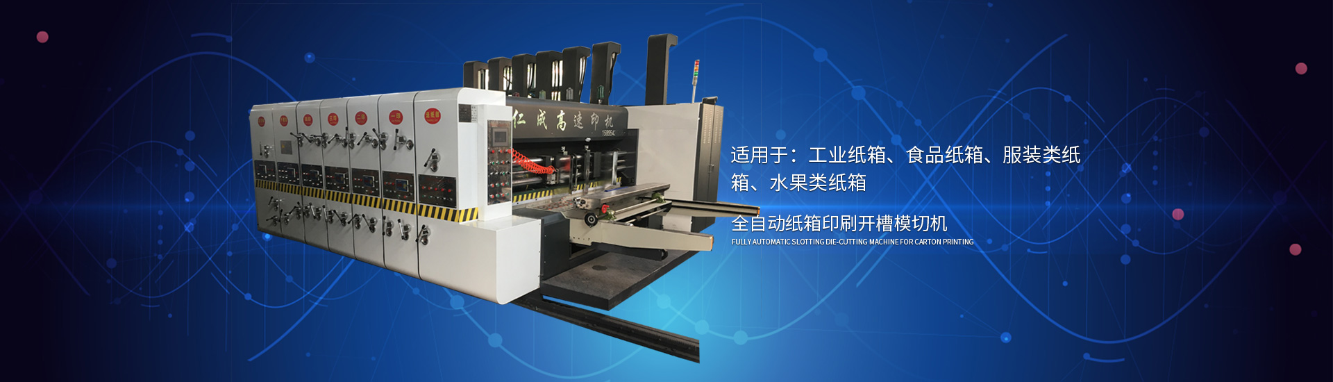 主要產(chǎn)品有高速印刷開(kāi)槽模切機(jī)、半自動(dòng)水墨印刷開(kāi)槽模切機(jī)、全自動(dòng)粘箱打包聯(lián)動(dòng)線(xiàn)、全自動(dòng) 插格機(jī)、半自動(dòng)粘箱機(jī)、半自動(dòng)釘箱機(jī)、手動(dòng)釘箱機(jī)、薄刀分紙機(jī)、PE繩打包機(jī)、PP帶智能打包 機(jī)、圓壓圓模切機(jī)、平壓壓痕機(jī)、自動(dòng)裱紙機(jī)、水墨污水處理機(jī)等產(chǎn)品
