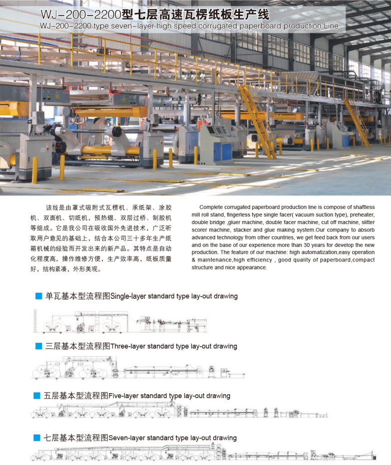 產(chǎn)品名稱: WJ-200-2200型七層高速瓦楞紙板生產(chǎn)線